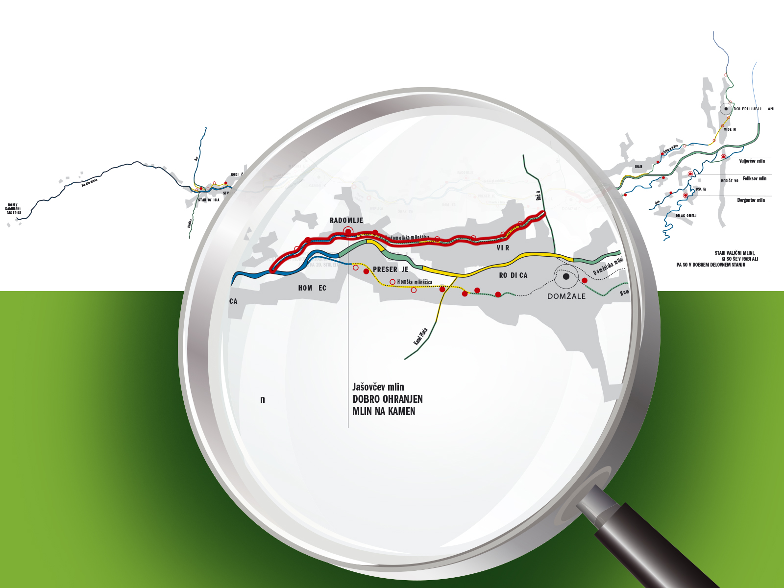 Stane Stražar v knjigi Ob bregovih Bistrice (1988) navaja, da so strugo izkopali prebivalci okoliških vasi pred več kot 400 leti, kar potrjujejo tudi najstarejše listine o mlinih, ki datirajo med leti 1436 in 1404. O mlinarski tradiciji še danes pričata dva dobro ohranjena mlina, ki sta še zadnja dva mlina na kamen na območju sistema mlinščic ob Kamniški Bistrici. Oba sta bila nekoč velika mlina na kamen in sta imela žagi venecianki. To sta Jašovčev mlin v Radomljah in Kovačkova žaga v Hudem pri Radomljah. Ti objekti na vodni pogon so danes med najbolj ogroženimi spomeniki kmečke arhitekture na Slovenskem. Oba objekta sta v precej slabem stanju, a bi ju bilo še moč obnoviti ter ohranjati za kasnejše rodove. Oba mlina in žaga v Radomljah bi si namreč zaslužili, da se jih obnovi kot tehnične spomenike, ki v kontekstu poti ob mlinih in mlinščicah lahko predstavljajo točko posebnega interesa, saj bi bilo v obeh možno prikazati tradicionalno obrt – mlinarstvo in žagarstvo v obravnavani regiji.